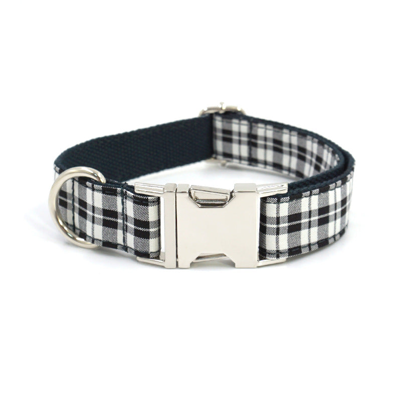 This black and white plaid dog collar and leash set is designed for everyday walking and routine outings, offering a clean, classic look inspired by traditional British-style patterns. The set includes a matching adjustable collar and leash, creating a coordinated appearance suitable for daily use without unnecessary embellishment.