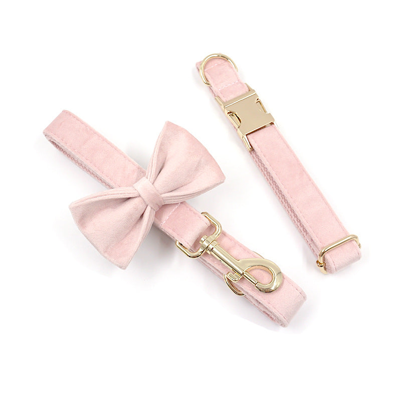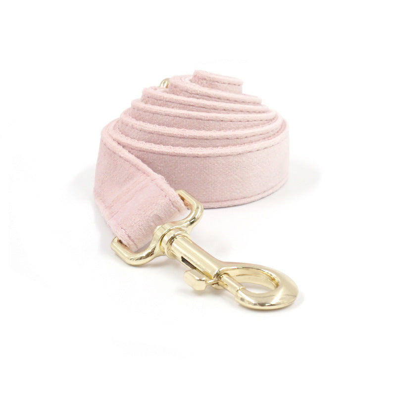 This pink velvet dog collar is designed for daily wear and routine outings, offering a soft texture combined with a clean, understated appearance. The collar features a light gold–tone buckle that provides a simple visual contrast while maintaining a balanced and practical design suitable for everyday pet use.