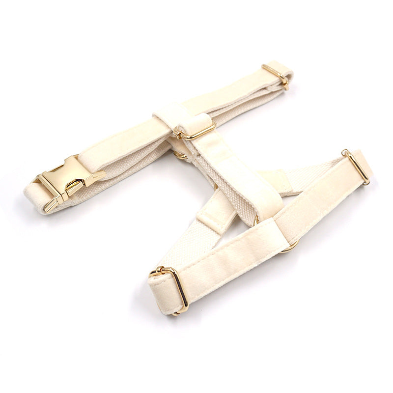 Pettns | Cream Velvet Dog Vest Harness with Gold-Tone Buckle for Everyday Outdoor Walks