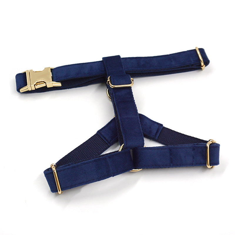 Pettns | Tibetan Blue Velvet Dog Harness with Gold-Tone Buckle for Everyday Outings