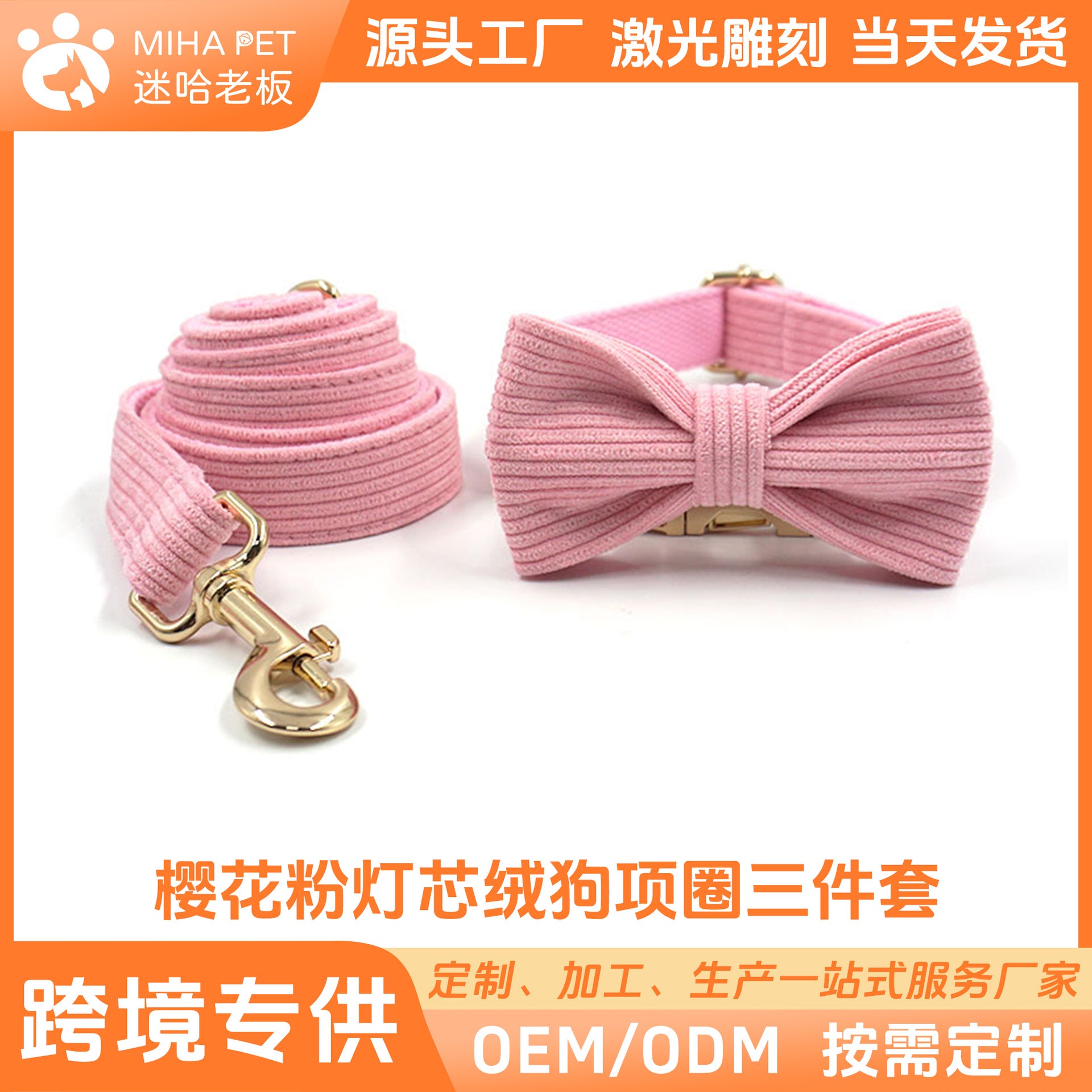 樱花粉宠物项圈牵引绳蝴蝶结套装 INS风跨境一件代发狗项圈牵引带